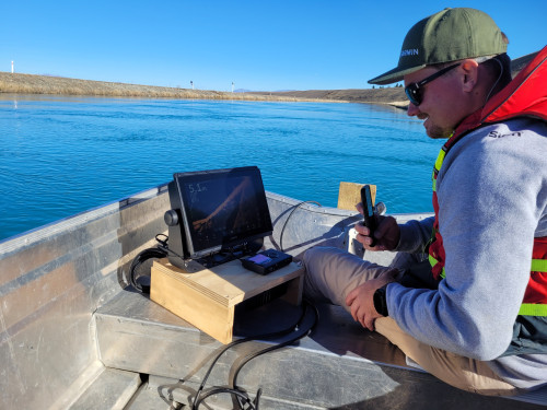 Garmins Harry Curley trials LiveScope sonar technology on the Tekapo Canal.