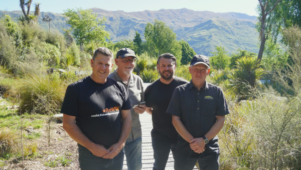 Celebrating the covenanting of Bullock Creek Hatchery Springs wetland are (from left) Otago Fish & Game chief executive Ian Hadland, Department of Corrections senior community work supervisor Dave Madden, Friends of Bullock Creek president Ben Irving, and QEII National Trust regional representative for Central Otago Rob Wardle. Photo: supplied