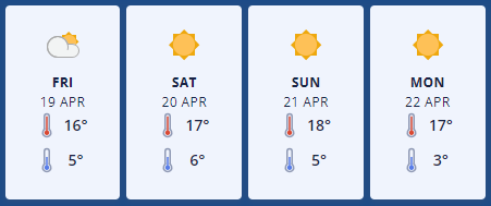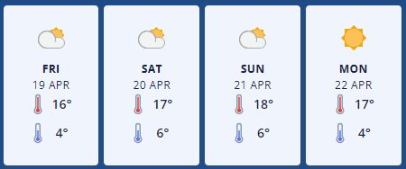 Alexandra stands out as the prime location in the region this weekend, boasting excellent conditions from Saturday to Tuesday. Expect clear skies and light winds over the weekend, making it perfect for a trip to Poolburn Reservoir before its seasonal closure on April 30. Light rain on Friday could make access tracks greasy, so take care while traveling.