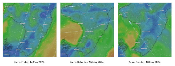 For Taranaki and the lower North Island it will bring strong north-easterlies with it for Friday afternoon.